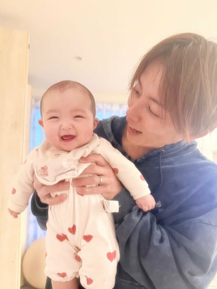 長女の希空さんが撮影したという、生後5ヵ月次女・夢空ちゃんの癒やしあふれる笑顔ショットを公開しました。