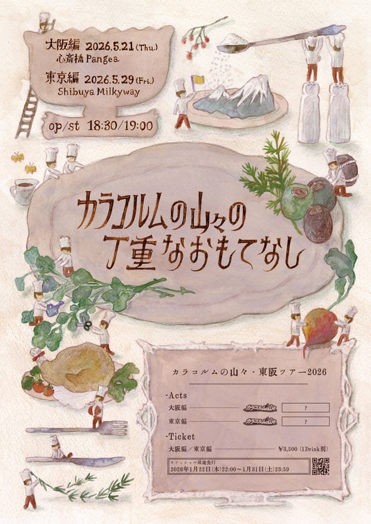 そんな彼らの次なる主催イベント『カラコルムの山々の丁重なおもてなし』は、ゲストアーティストを迎え、カラコルム流の「おもてなし」をお届けする東阪ツアーとなっている。