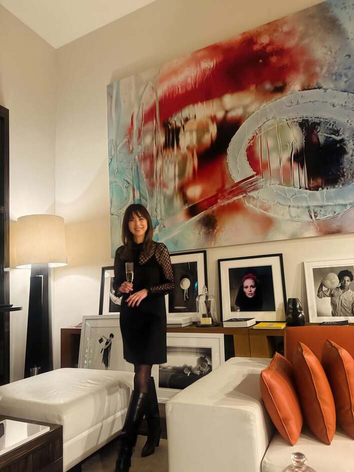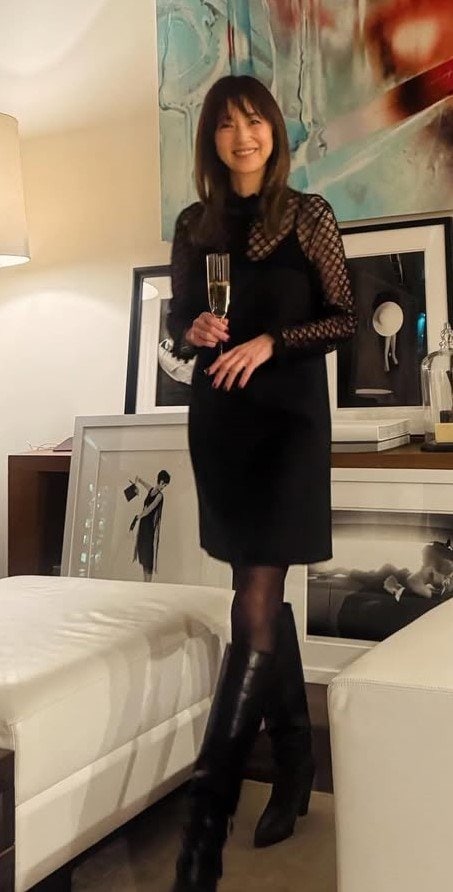 今回の投稿で、高岡さんは「素敵な空間で素敵な方々と過ごした貴重な夜。。」とつづり、壁一面に広がる大きな絵画や、さまざまなモノクロ写真が飾られた空間で、片足を前に出してすらりとたたずんだショットを公開。膝上ミニ丈の黒のワンピースに身を包み、シャンパングラスを片手に、カメラに向かってにっこりと笑顔を見せています。