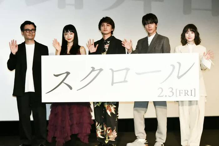 北村匠海さんと中川大志さんがW主演を務める、映画「スクロール」の完成披露舞台挨拶が1月19日に行われ、北村さん、中川さん、松岡茉優さん、古川琴音さん、清水康彦監督が登壇しました。