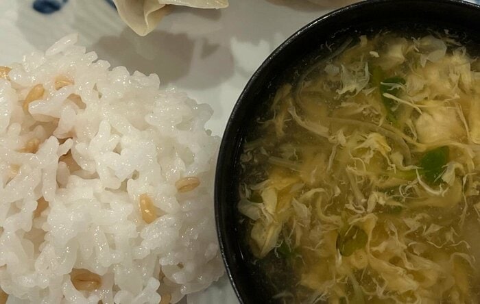 雑穀を少し混ぜたご飯の横に用意されたたまごスープは「私が作るよりふわっふわだった!」と長女の手料理を大絶賛!一口味わうだけで、心も体も満たされそうですね。