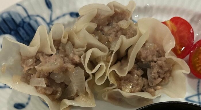 また、シューマイの皮がなく、ギョーザの皮で作ったようで、ジューシーなお肉を丁寧に包んでいます。