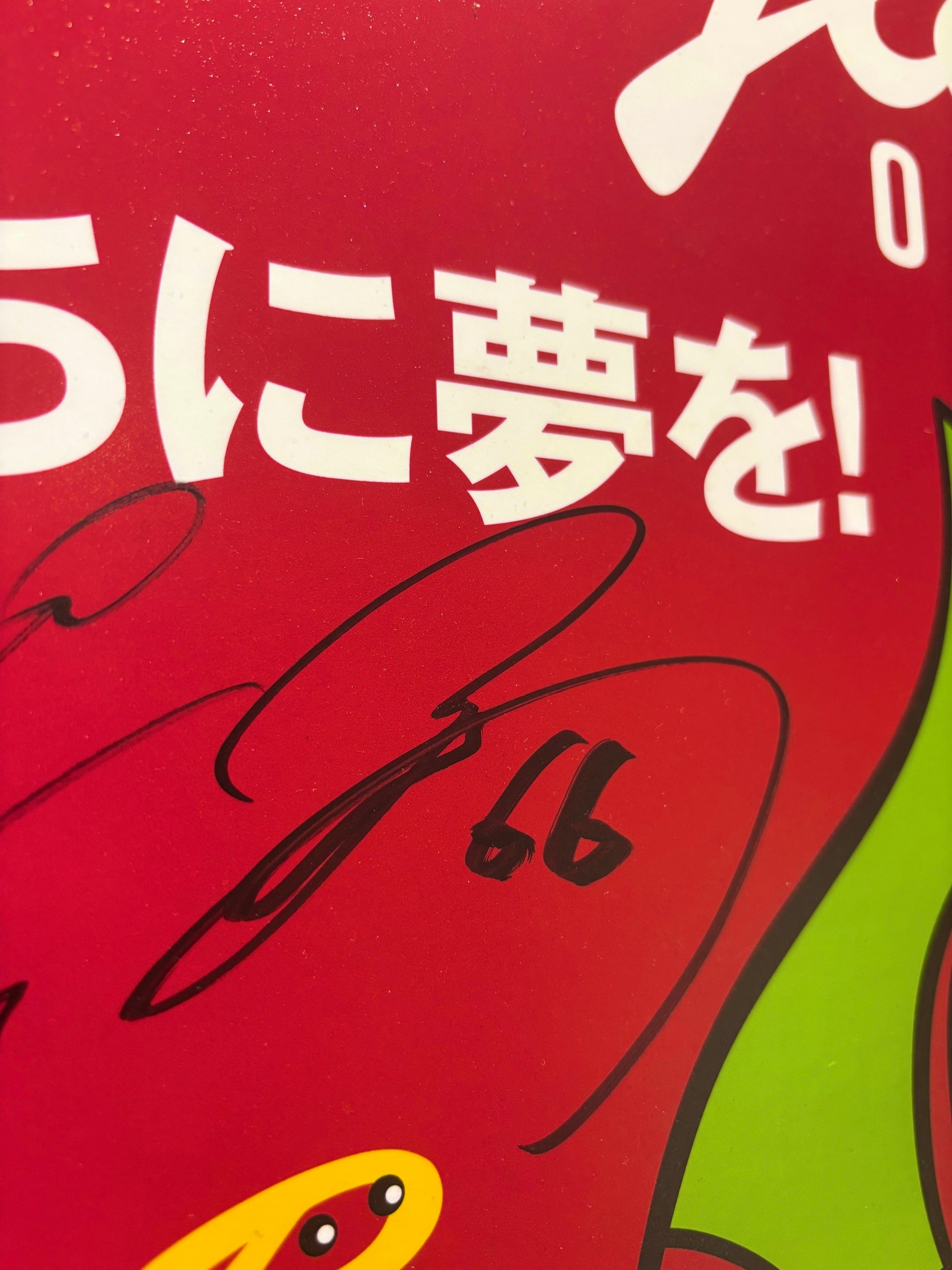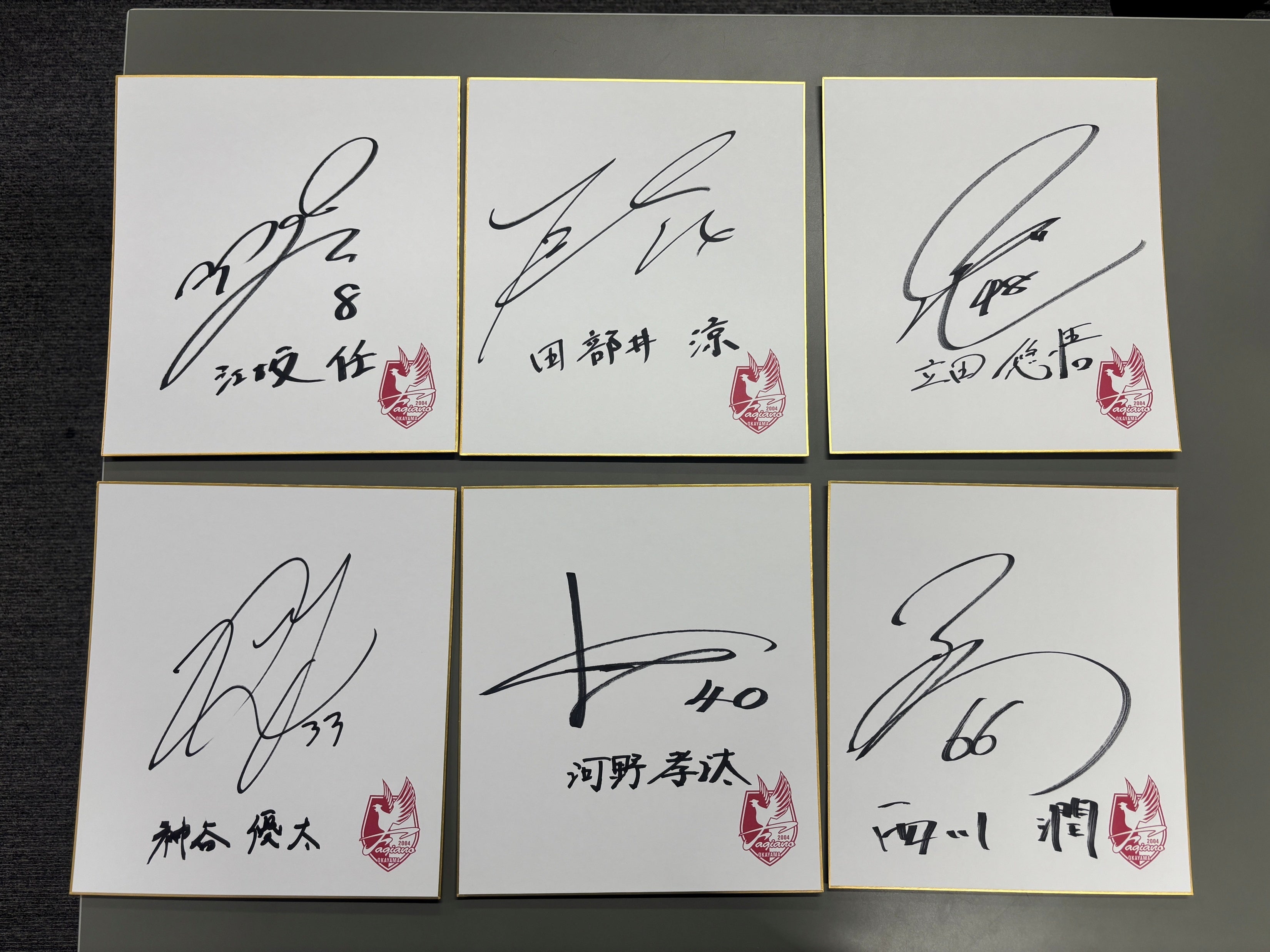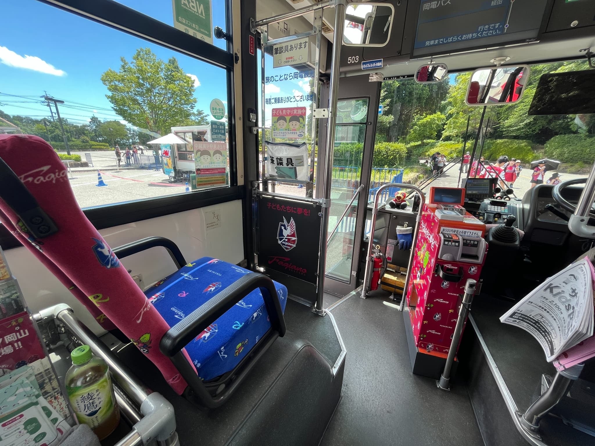 この特別な2日間を盛り上げようと、初日の1月31日(土)に両備グループもスペシャルな企画をご用意。普段は別々の場所で岡山の街を走り抜けている「ファジアーノラッピング仕様」のバス・タクシー・トラックの3台が一堂に集結します。公共交通と物流を支える両備グループだからこそ実現できる、迫力満点の車両展示です。 ファジアーノバスの車内掲示のサイン色紙も新シーズンに合わせて更新。新加入選手のサインも並んでいます。