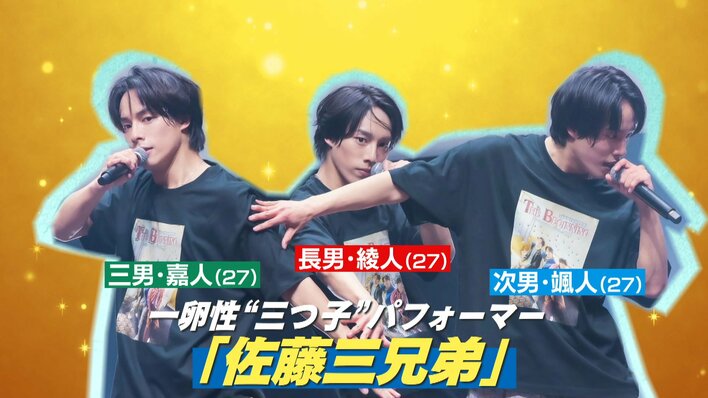 一卵性の“三つ子”パフォーマー「佐藤三兄弟」。