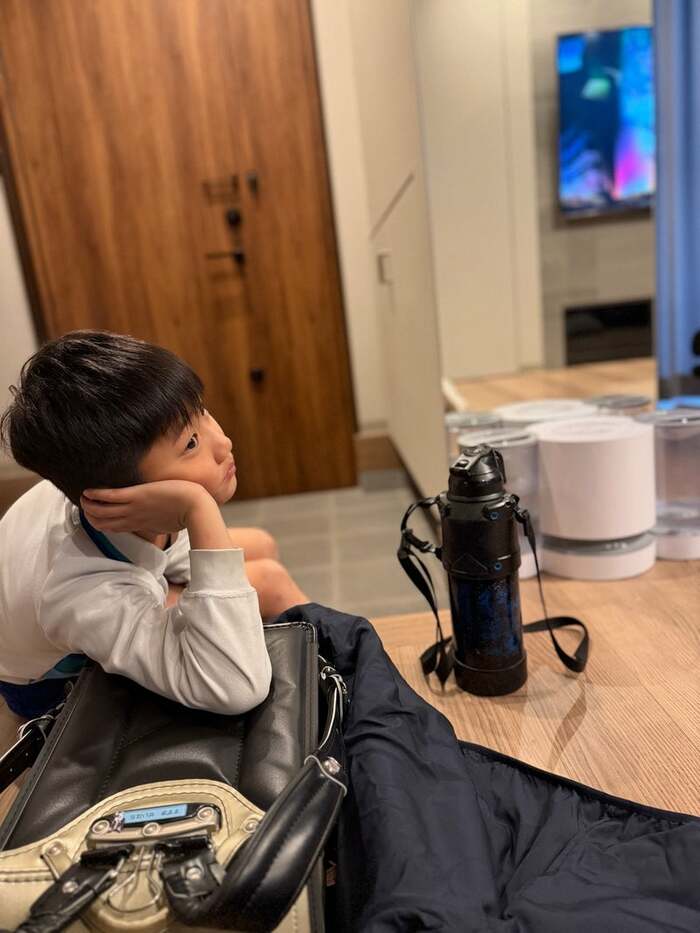 さらに「あーかわい」と、ランドセルに肘をつきながら、まったりくつろいでいる我が子に、小原さんもデレデレな様子が伺えます。