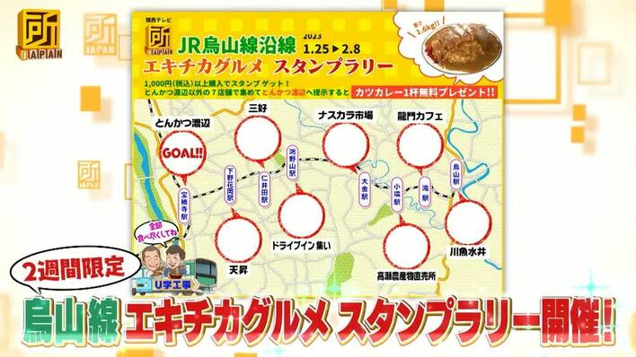 番組の最後には、1月25日(水)~2月5日(日)の2週間限定で「烏山線駅エキチカグルメ スタンプラリー」の開催を発表。