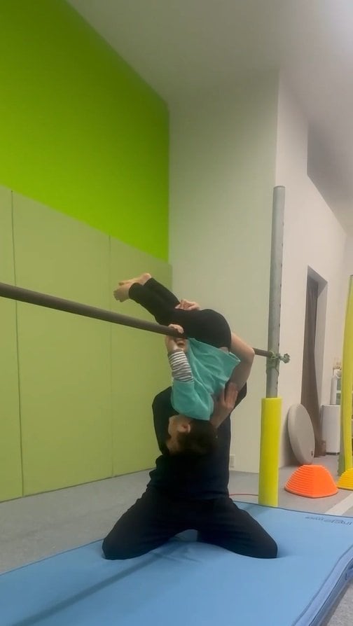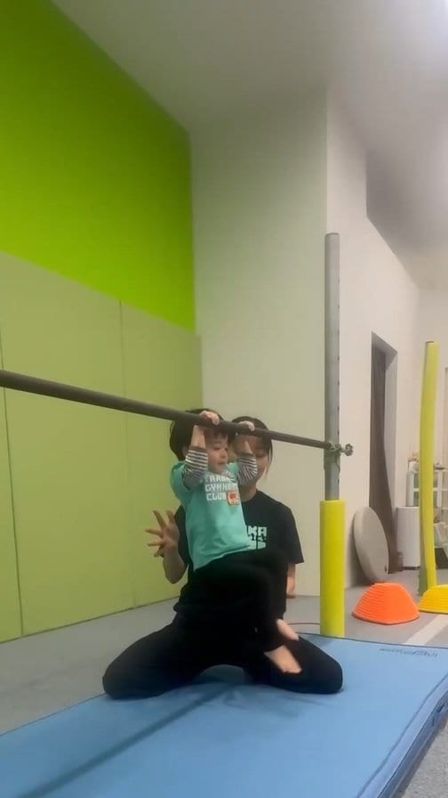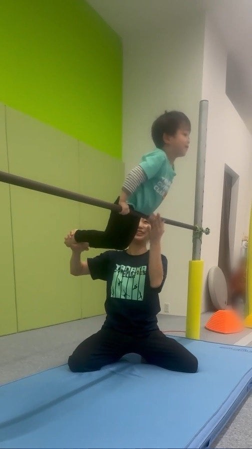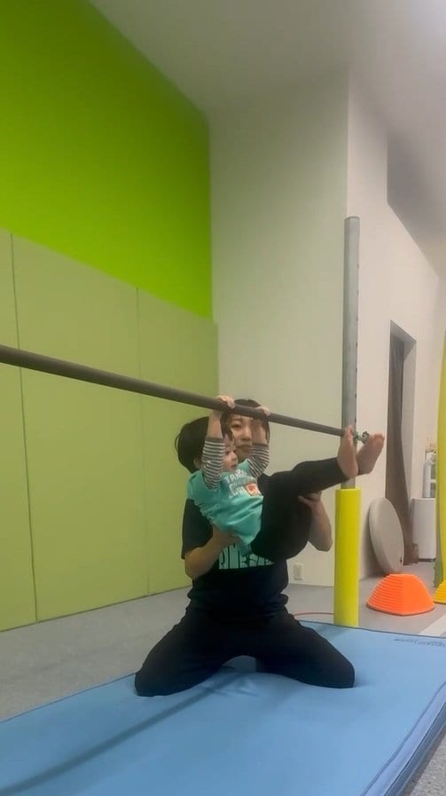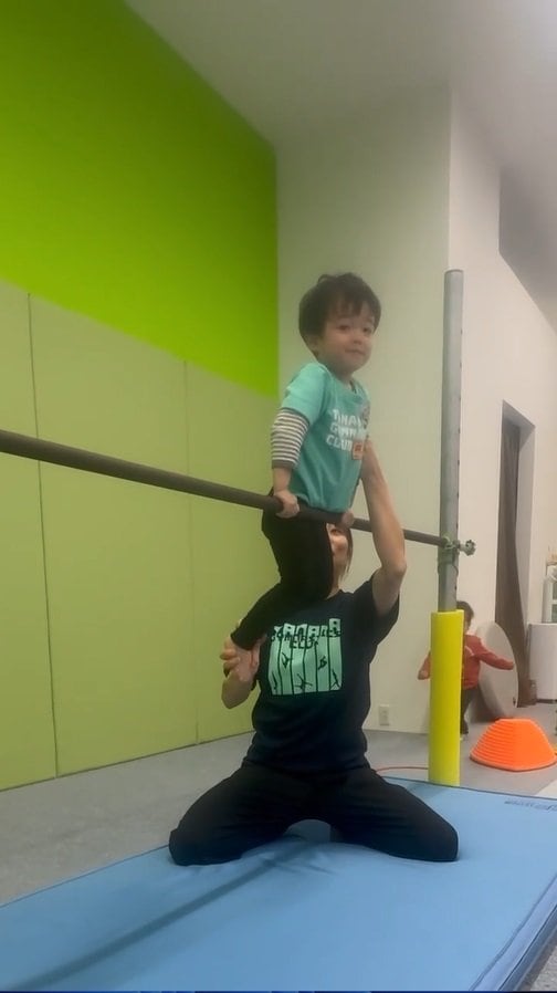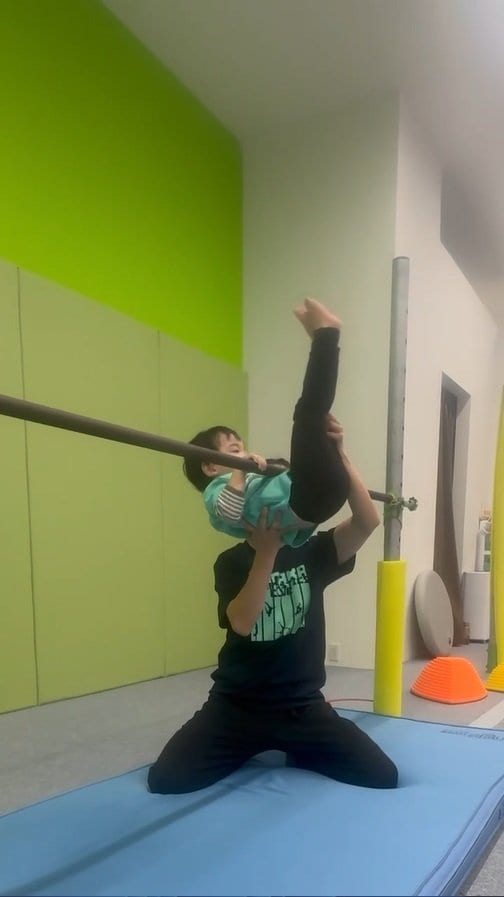そこには、体操教室『田中体操クラブ』の2・3歳児クラスのレッスンで、逆上がりに挑戦する長男の姿が!
