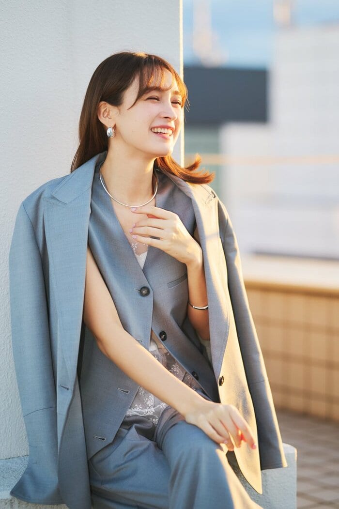 今回のフォト&スタイルブックで一番大変だったカットを伺うと、「恥ずかしすぎて葛藤が…(笑)」と初挑戦した“手ブラ”カットの撮影裏話を明かしました。