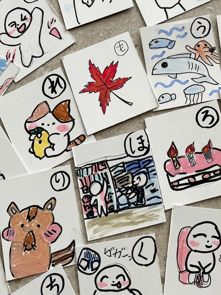 ざっと数えてみると40枚ほど作ったようで、本格的なかるた遊びができそうです。