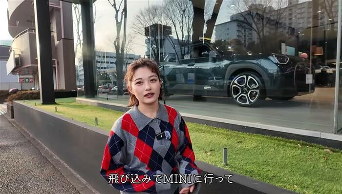 説明を終えた後には、愛車のMINIと運命を感じたことをカメラに向かって語る井上さん。