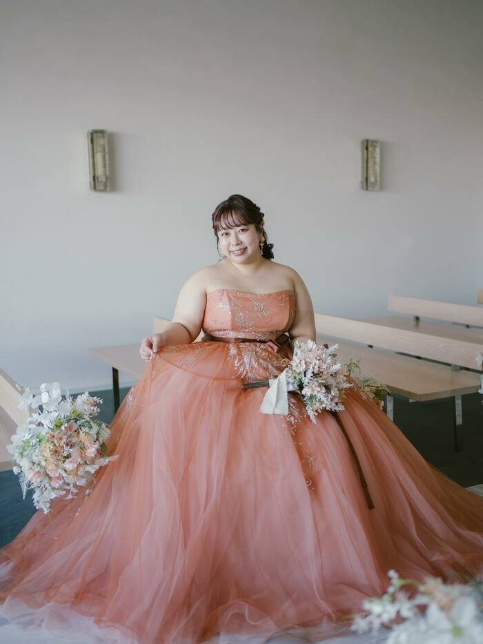 SNSからは「一生幸せでいてください!」「お姫様みたい」「オレンジのドレスも似合ってます!」「旦那さんもっともっと惚れちゃうねー」など注目の声が寄せられています。