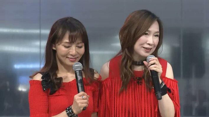 2人は80年代のテレビアニメ『機動戦士Zガンダム』のオープニングテーマを、前期を鮎川、後期を森口が担当して以来、34年の付き合い。初コラボとなる今回のリリースがかなり感慨深かったようで、森口は「私たちね、今日始まる前から泣いてたの(笑)」と告白。しゃべりながらも目を潤ませ、お互いに顔を見合わせながら「ヤバい、ヤバい…」と必死にこらえていた。