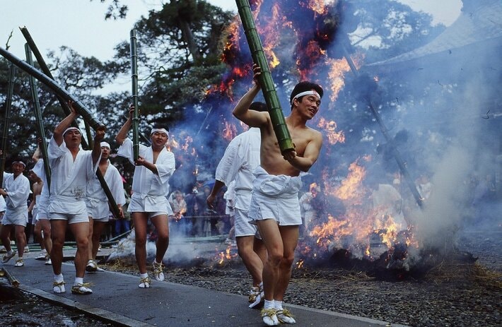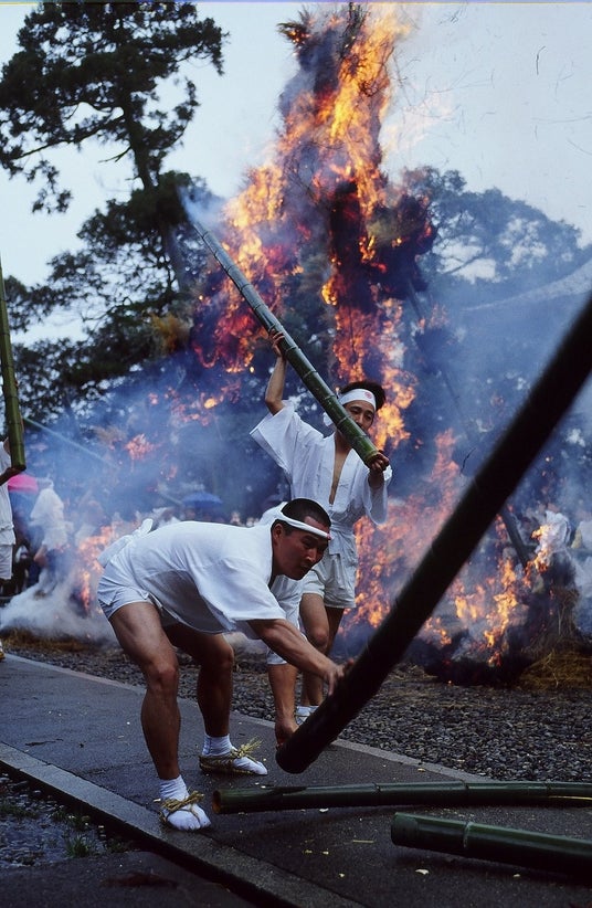 神事で割られた青竹は、自由に持ち帰ることができます。「この竹で作った凧はよく上がる」「箸にすると病気に効果がある」「玄関先に置けば魔除になる」「屋根裏に置けば雷除けになる」といった言い伝えもあり、縁起物として毎年多くの人に親しまれています。また、この神事を題材とする写真コンテストが、毎年行われています。