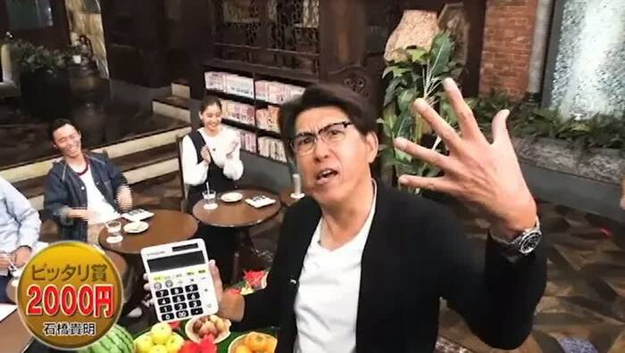 1つに「おいくら万円出せますか?」という質問に、800円(新木)、4000円(まなぶ)、10000円(たくみ)と答える中、「俺がピタリ賞だな」と自信満々の石橋が2000円という見立てで見事言い当て「芸能界35年!まだまだガキにはわかんねえ!」とふんぞり返った。