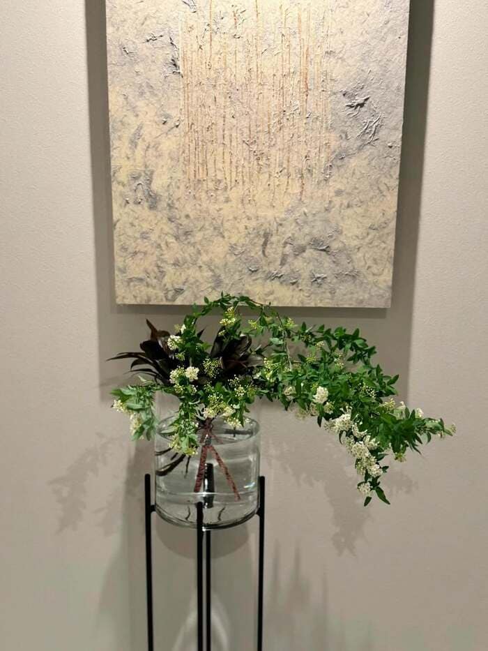 そして、絵画の下には、かわいらしい白い小花が特徴的な、ボリューム感あるお花が。