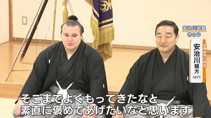 今場所12日目から、これまでの「青」の締め込みから「黒」へと変えた安青錦。その黒の締め込みは、師匠・安治川親方が現役時代に付けていたものを譲り受けた物でした。