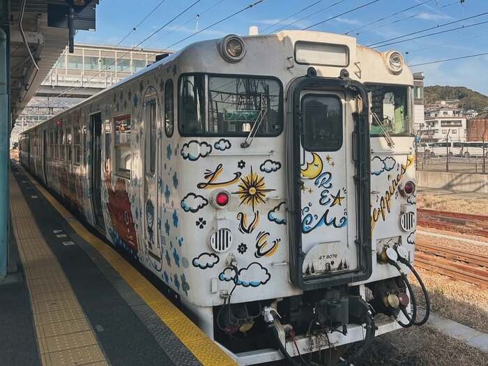 ポップなイラストが目を引く車両は、とってもかわいらしくて素敵ですね!