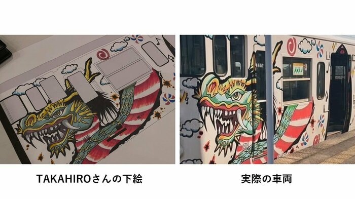 今回の車両は、2022年9月23日の西九州新幹線開業に合わせて運行を開始した車両をTAKAHIROさんがデザインし、沿線の小学生たちがペイントすることで誕生したもの。