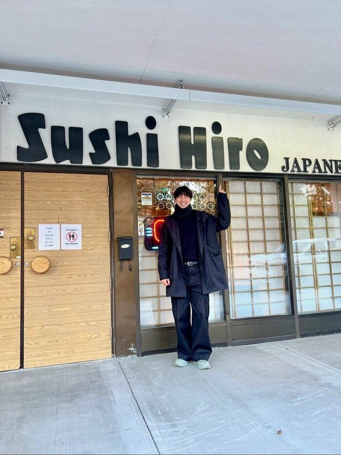 さらに、休日の様子では全身ブラックコーデで和食のお店でパシャリ!