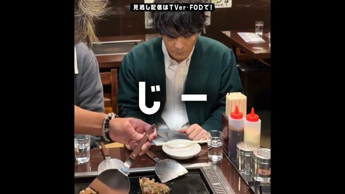 番組公式SNSでは、第2話のお好み焼き屋さんのシーンから、津田さんのオフショット動画を紹介。