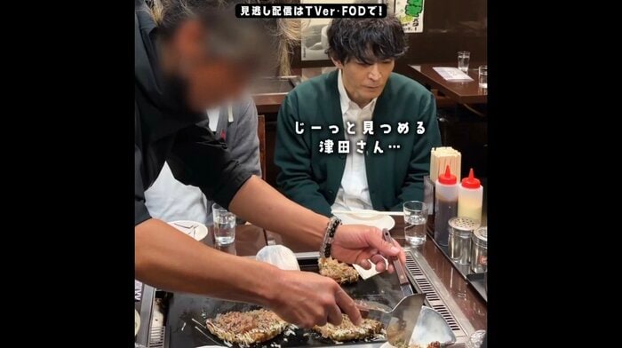 そんな場面の撮影で、大森さんと並んで席に座る津田さん。番組スタッフが目の前でお好み焼きを焼いていると、「めっちゃ好きなんですよ、お好み焼き」と、うれしそうに話します。