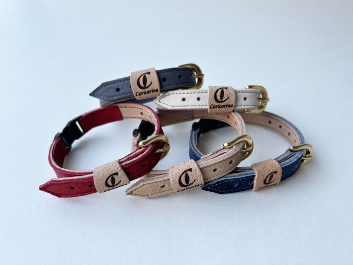 近年、猫用首輪はデザイン性やバリエーションが豊富になり、猫との暮らしを楽しむアイテムとして広く親しまれるようになっています。その中でカリカリーナは、見た目の美しさに加え、猫にとっての快適性や安全性、素材の背景まで大切にした首輪づくりに取り組みたいと考えました。猫の行動や習性に向き合い続けてきたブランドとして「猫にやさしい首輪とは何か」を改めて見つめ直し、さらに、地域に貢献できるものづくりを目指したいという思いから、地元工房との協業により本製品の開発に至りました。