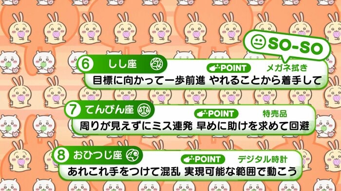 『めざましテレビ』で放送中の「ちいかわ占い」 テレビ放送がない日はお休みで、月~土:朝7時以降に更新予定です。