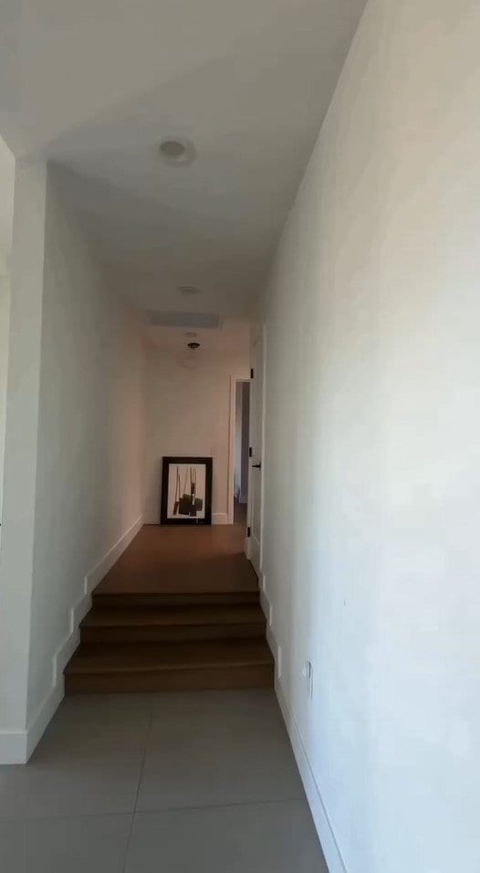 続いて、白壁と高さのある天井が印象的な自宅の廊下を公開。