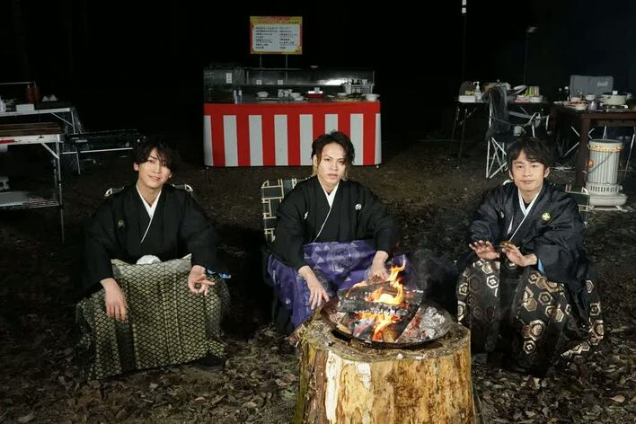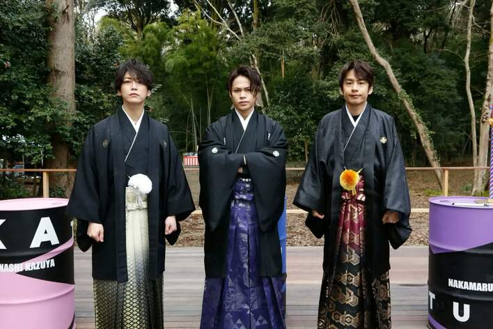 KAT-TUNの亀梨和也さん、上田竜也さん、中丸雄一さんが、袴姿でBBQを楽しみます。