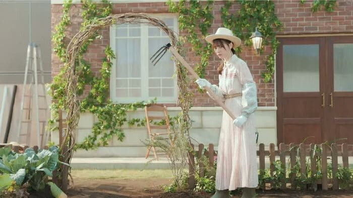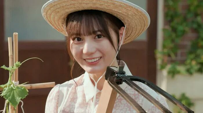 また、小坂さんは今回はじめて農作業の演技にも挑戦。キュートな麦わら帽子&長靴スタイルで、少し動揺しながらもクワを振り下ろす姿は必見です。