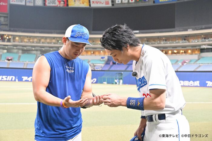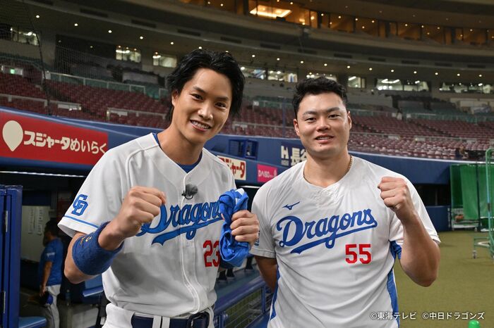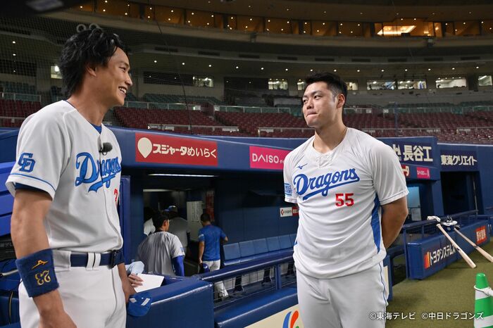 細川選手が「動画を参考にしてもらったのは、うれしいです。僕も、個人の結果はそれなりに上がってきているので、最後まで頑張ります」と語ると、鈴木さんは「僕も、ドラマを通して中日ドラゴンズを盛り上げるように頑張りますので、引き続きよろしくお願いします!」と、互いにエールを送り合いました。
