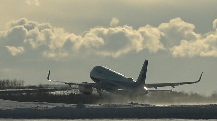 そして迎えた午前8時半。無事、始発の飛行機が飛び立っていきました。