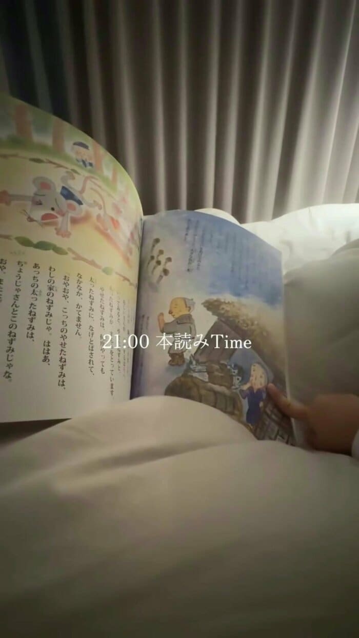その後は寝室へ移動し、経本を読み聞かせながら寝かしつけ。ベビちんが眠りにつくと…