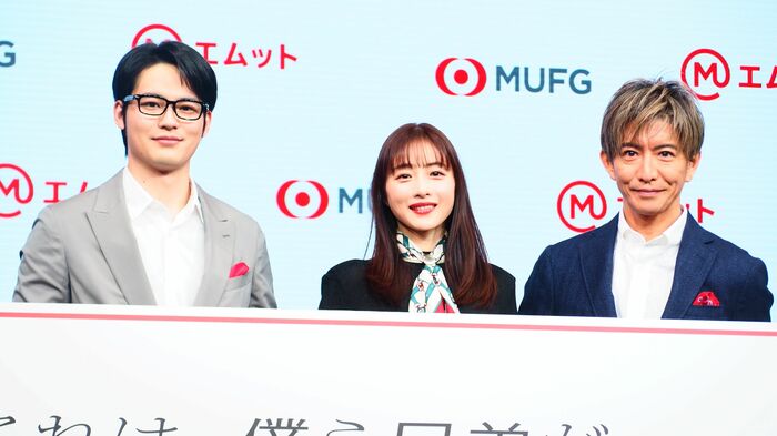 三菱UFJフィナンシャル・グループの新TV CM発表会が1月27日に都内で行われ、木村拓哉さん、石原さとみさん、水上恒司さんが出席しました。