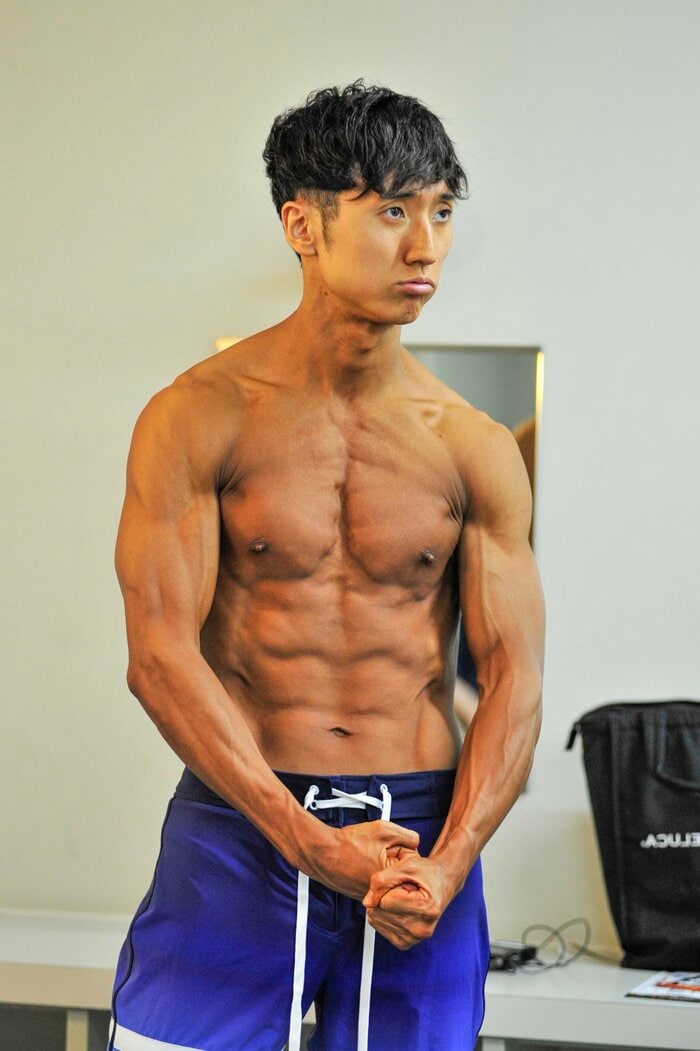 当時は体重58kgまで減量しており、お腹周りの脂肪はほぼ皆無。全ての筋肉のカットが美しく浮かび上がっています。