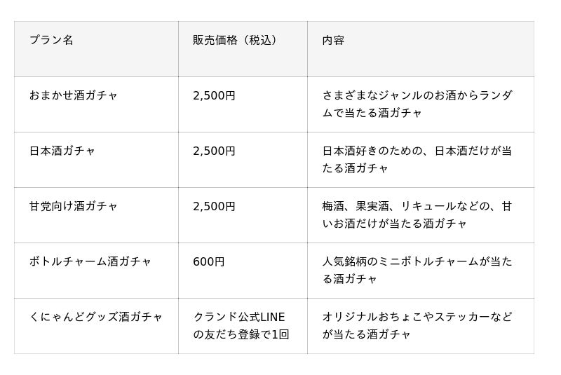 「酒ガチャ」とは、「なにが当たるかわからない。だからこそ楽しめる、新たなお酒との出会い。」をコンセプトに、日本酒・梅酒・果実酒・リキュール・焼酎・ワイン・プレミアムサワーベースなど、500種類を超えるお酒の中から、ランダムにお酒をお届けするクランドの人気サービスです。2019年に誕生し、コロナ禍の家飲み需要をきっかけにSNSを中心に話題となりました。