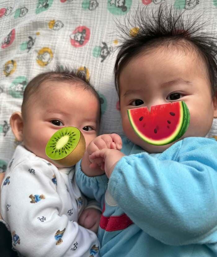 「カメラ目線完璧」ギュッとくっついたかわいすぎる双子ショット公開