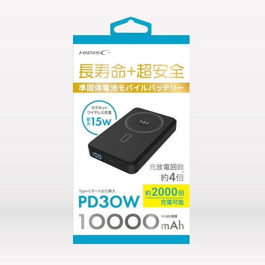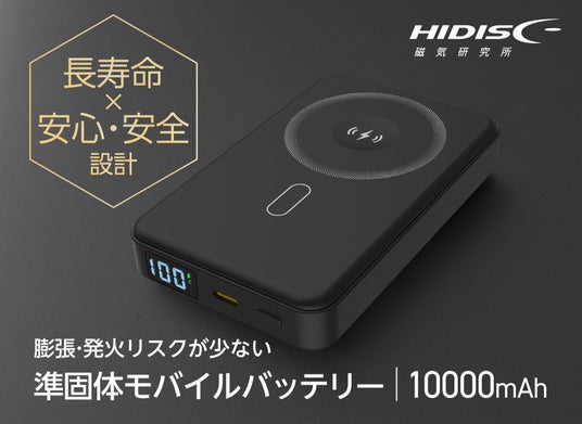 株式会社磁気研究所(本社:東京都千代田区、代表取締役:齋藤邦之)は、 昨年メディアや雑誌で多く紹介された 長寿命+超安全設計の「準固体電池モバイルバッテリー/HD4-SSMBTC30W10DSBK」 の再販を開始します。本製品は、最新の準固体リチウムイオン電池を採用し、 高い安全性・低発熱性能・高い利便性 を実現した次世代モバイルバッテリーです。