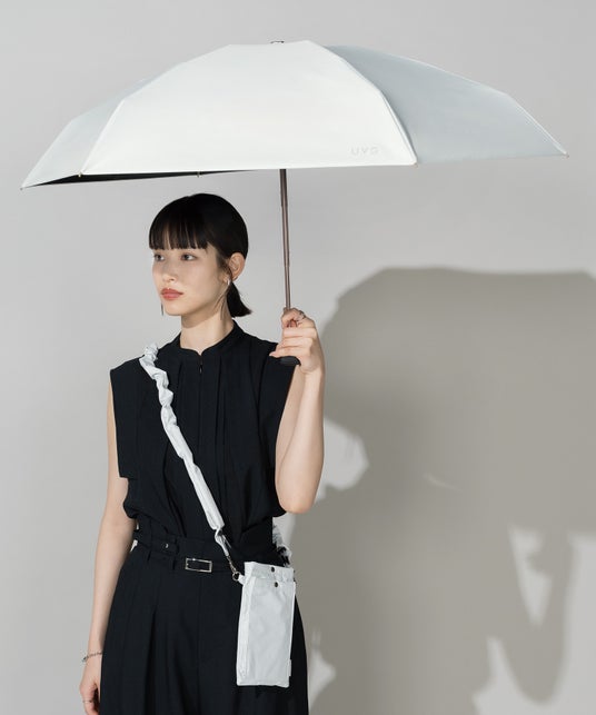 いつでも手軽に紫外線対策が可能な、ショルダーポシェット付きの折りたたみ傘。