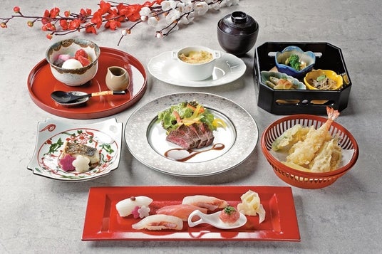 Beginning Sunday, February 1, Sushi, Tempura & Teppanyaki “Hagoromo” will offer a selection of seasonal menus, including the dinner course “Ume Viewing Kaiseki” (¥12,000, tax and service charge included), the weekday lunch “Spring Ume Kaiseki” (¥6,000, tax and service charge included), and the “Ume Viewing Bento” (¥3,500, tax included).