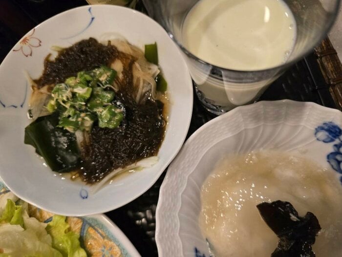 その他にも「海草酢の物 とろろ汁もあります」と食物繊維豊富で腸内環境を整えるにはもってこいの2品をが並び…