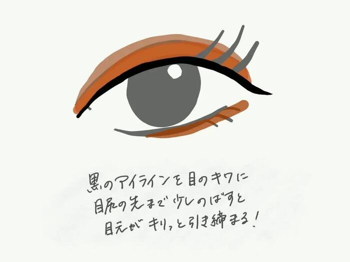 なるほど。アイメイクは二重まぶた向けのテクニックばかりが紹介されがちだけど、一重まぶただからこそ活かせるようなアイメイク、素敵だな。あえて目を伏せた時に綺麗に見えるなんて…これぞ大人のワザありメイク!