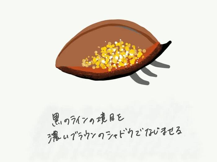 そこにブラウンを、同じく指でポンポンと重ねる。ブラウンで加えていくシブさは、ご自身の好みで調節を。林さん曰く、時間が経つとシブい色も馴染んでいくので、最初はシブさが強めでも可愛いとのこと。