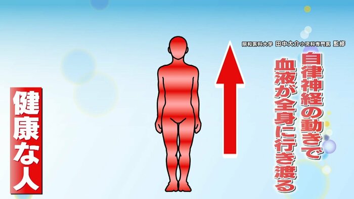 通常、あおむけの状態から起き上がると一時的に下半身にたまった血液が、自律神経の動きで全身に行き渡ります。