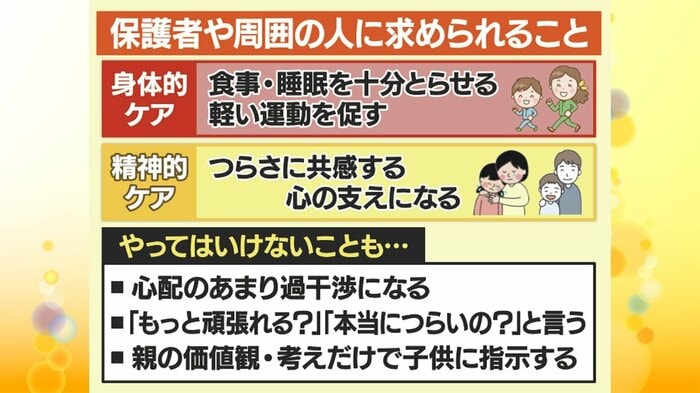 そうですね、やはり子どもが「つらい」といっている言葉を、しっかり受け止めることが大事で、チェックリストを利用したりして“話をまず聞く”と。