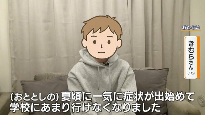 2024年に症状が出始め、現在も「学校に通うことが難しい日がある」と話すのは、中学3年生のきむらさん。