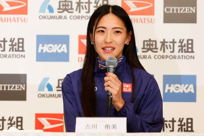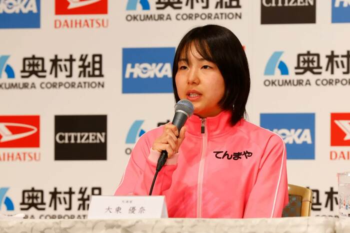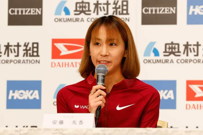 会見には、招待選手から安藤友香選手(ワコール)、上杉真穂選手(スターツ)、佐藤早也伽選手(積水化学)、?川侑美選手(ユニクロ)、筒井咲帆選手(ヤマダホールディングス)、マウリーン・チェプケモイ選手(ケニア)が登壇。