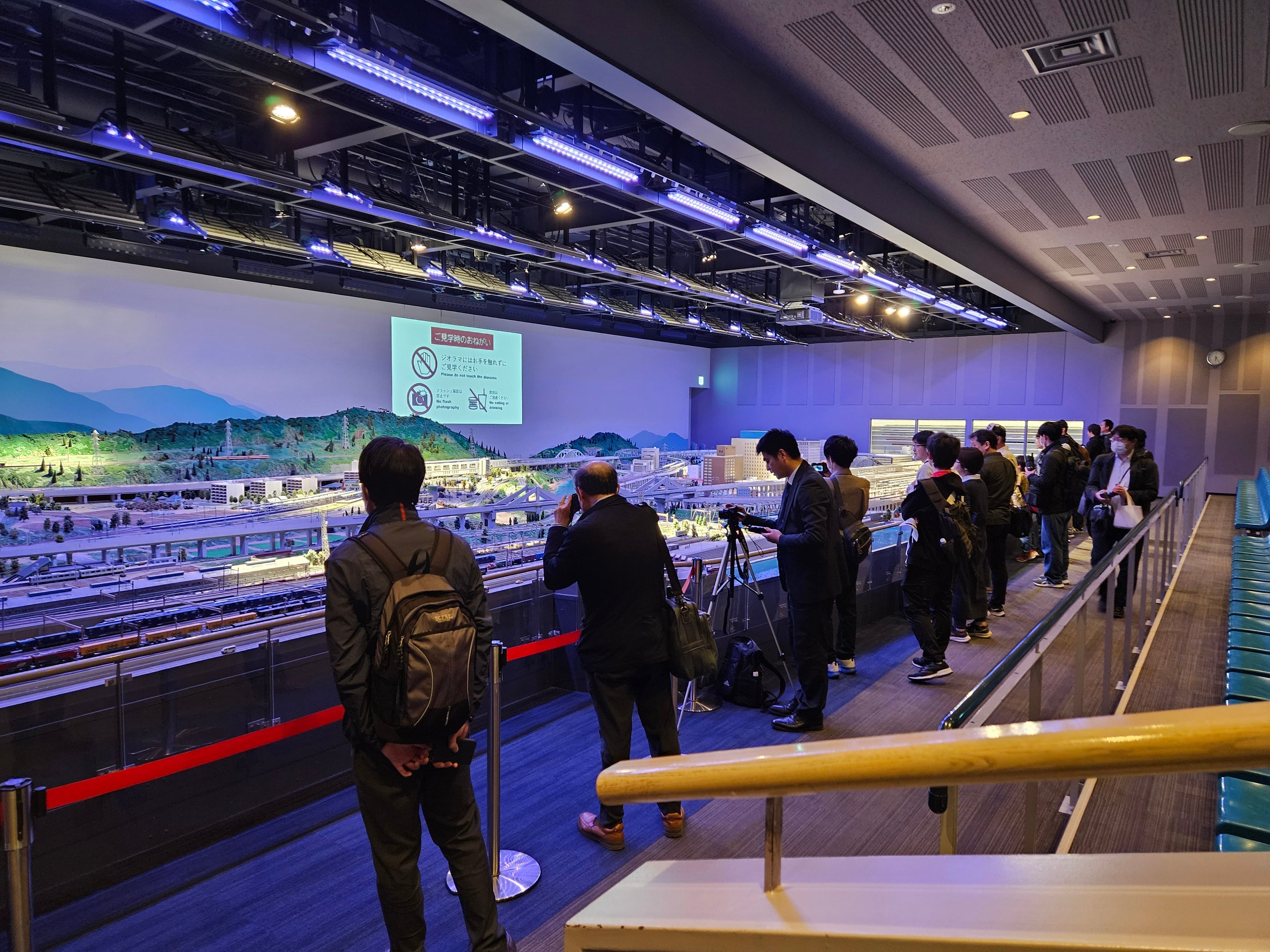 走行中のジオラマ車両を心ゆくまで楽しむことができます!ジオラマ室内も一脚・三脚を使った撮影が可能です!