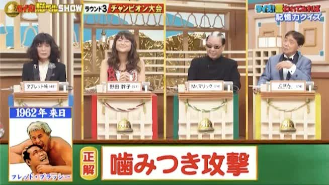 今回の解答者は、歌手・芸人のタブレット純さん(48)、シンガーソングライター・野田幹子さん(57)、超魔術師のMr.マリックさん(74)、芸人・こぼんさん(74)の4名です。