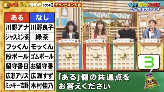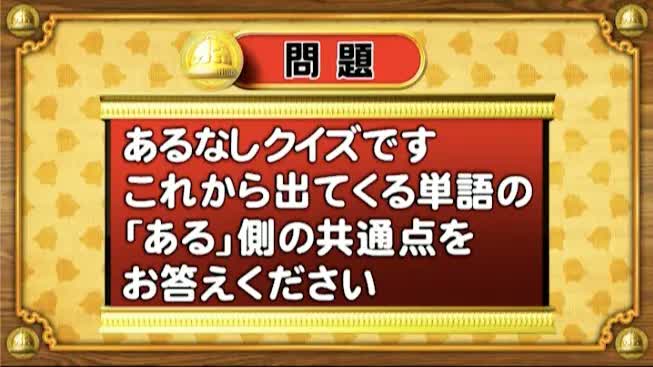 次は、あるなしクイズ。次の単語の「ある」側の共通点を答えてください。